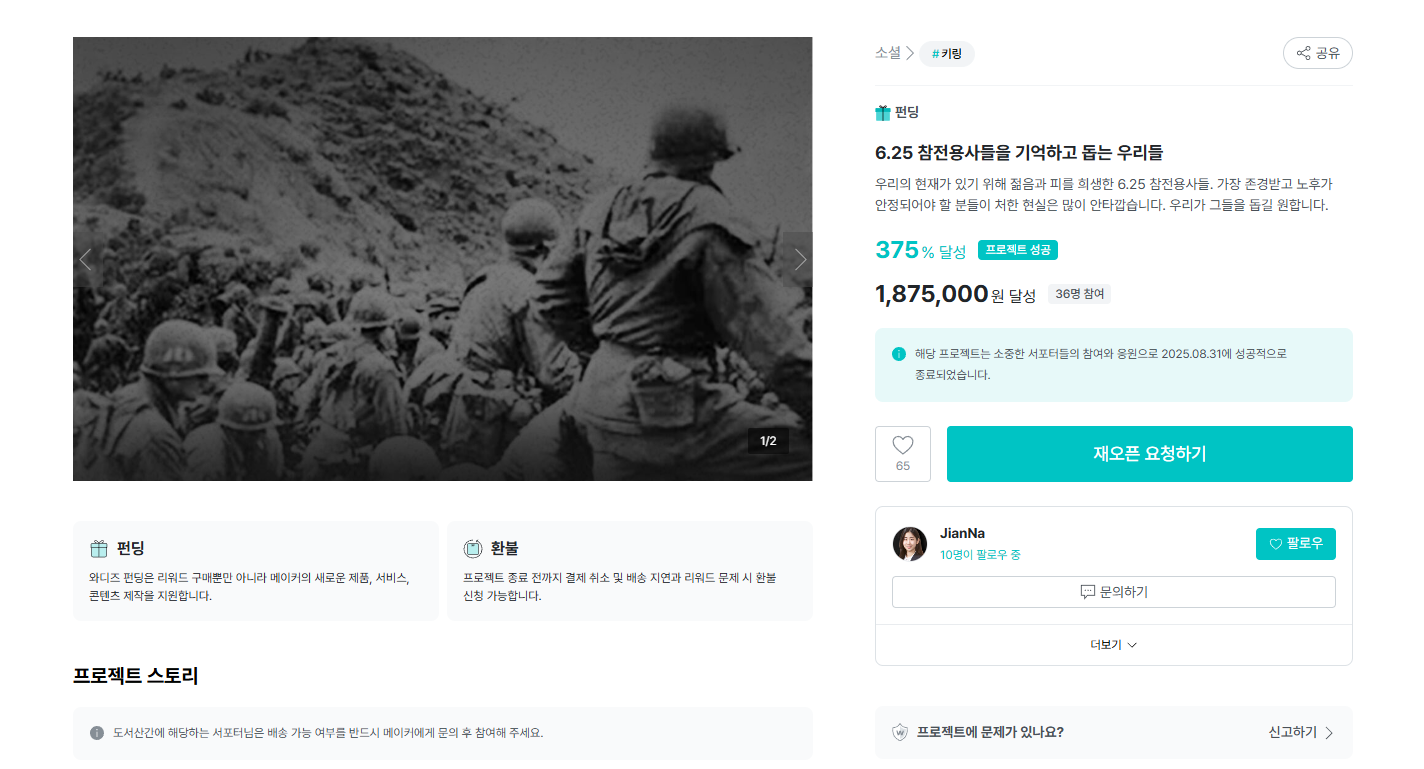 I donated the proceeds of my crowdfunding campaign $1000 to support Korean War veterans.